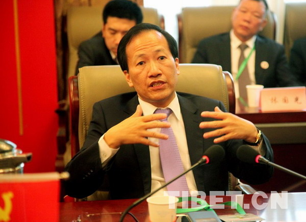 座談會上,西藏自治區副主席、區黨委統戰部常務副部長格桑次仁首先向代表團一行介紹了西藏自治區和全區統戰民族宗教工作近年來的發展情況。