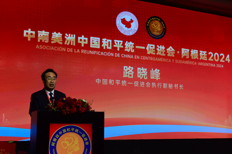 當地時間10月18日,由阿根廷中國和平統一促進會主辦的中南美洲中國和平統一促進會2024年年會在阿根廷首都布宜諾斯艾利斯隆重舉行。圍繞“鑄牢中華民族共同體意識,為早日實現中國統一大業而努力奮斗”主題,廣泛凝聚共識,共商祖國統一大計。中國和平統一促進會執行副秘書長路曉峰率團出席并致辭。中央臺辦、中國僑聯、中國駐阿根廷大使館等單位領導和來自中南美洲16個國家、地區的統促會及僑團代表約300人出席。