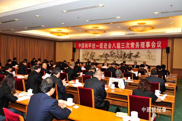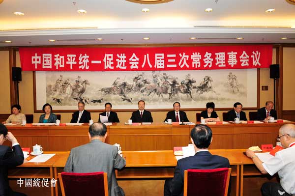 6月18日,中國和平統(tǒng)一促進(jìn)會(huì)八屆三次常務(wù)理事會(huì)議在北京召開。會(huì)議審議通過了關(guān)于召開中國和平統(tǒng)一促進(jìn)會(huì)八屆二次理事大會(huì)的決定;審議通過了有關(guān)人事增補(bǔ)和任免事項(xiàng)。