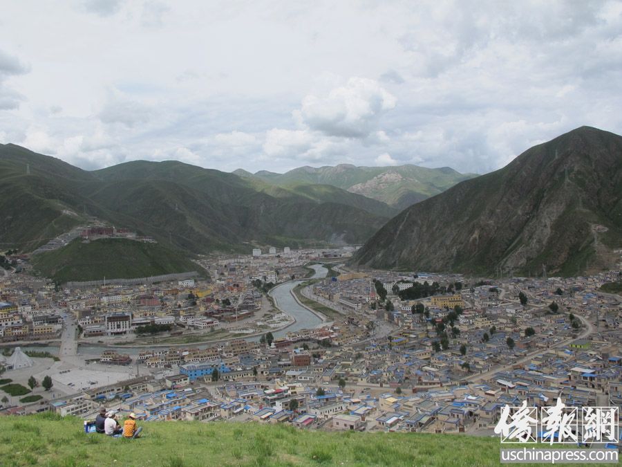 海內(nèi)外華文媒體參觀玉樹結(jié)古鎮(zhèn)觀景臺